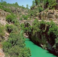 Koprülü Canyon is a National Park. This valley of wild beauty, rich in flora and fauna, is a centre for rafting. Restaurants specialise in fresh trout.