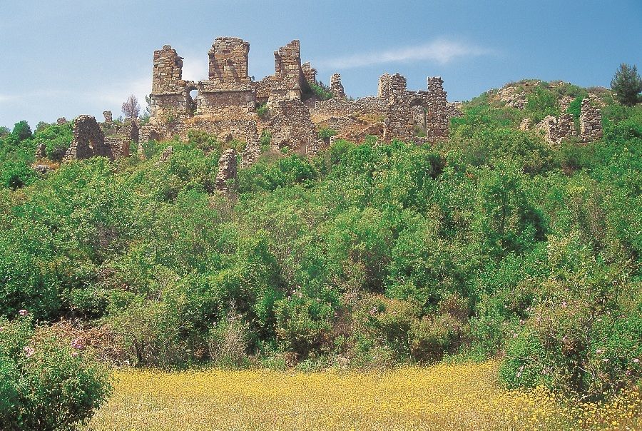 Leartes, about 25 km from Alanya, is an ancient city at the foot of the Cebel-i Reis mountain (1649m). It is signposted from the main Alanya-Gazipașa road. An inscription found in the town dates from the 7th century B.C., and is now in Alanya Archaeological Museum. It was an important city, as coins were minted there, and inscriptions suggest that it was at its height between the 1st and 3rd centuries A.D. The ruins include observatory towers, a theatre, an agora, a bath, a necropolis and temples to Zeus, Apollo and Caesar.